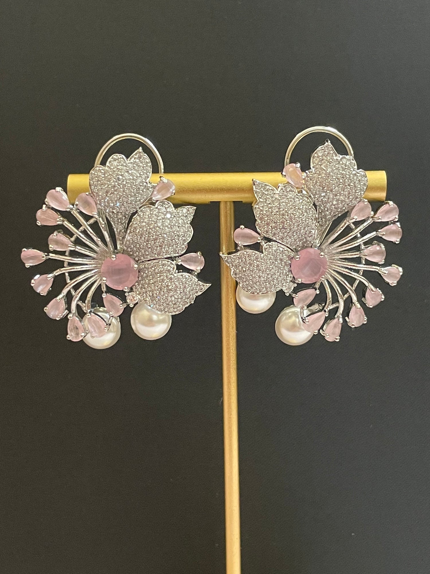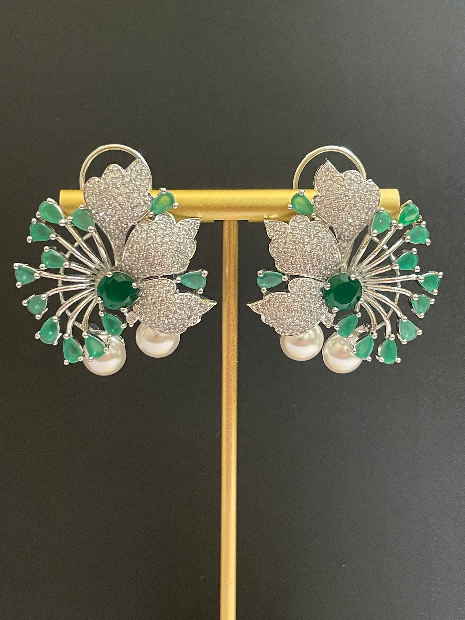 Stylish, designer AD Earrings with Pearl and colored stones.